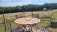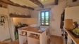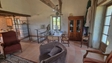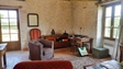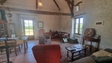 Une première maison en pierre restaurée avec des matériaux de qualité dont les sols en tomettes , les plafonds en poutres apparentes , les murs plâtrés à l’ancienne, les menuiseries bois double vitrage et système de chauffage électrique. : Salon /séjour de 50 m2 avec coin cuisine donnant sur terrasse regardant sur les belles prairies.